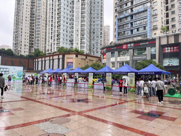 伴隨著蒙蒙細(xì)雨的早晨,在溫州銀泰百貨中心廣場(chǎng)活動(dòng)現(xiàn)場(chǎng)各單位通過(guò)展板、橫幅、宣傳冊(cè)、掃碼答題等方式向廣大居民群眾傳播節(jié)能降碳和綠色發(fā)展理念,倡導(dǎo)綠色低碳生活方式,引導(dǎo)廣大市民養(yǎng)成綠色低碳生活方式。工業(yè)院組織10名志愿者在場(chǎng)向市民普及節(jié)能小常識(shí),幫助市民解答節(jié)能方面的日常問(wèn)題。上午11點(diǎn),工業(yè)院一部分志愿者又馬不停蹄的趕往位于溫州市人民政府大院內(nèi)的節(jié)能宣傳活動(dòng)場(chǎng),在機(jī)關(guān)大院內(nèi)又掀起一股節(jié)能宣傳的熱潮。